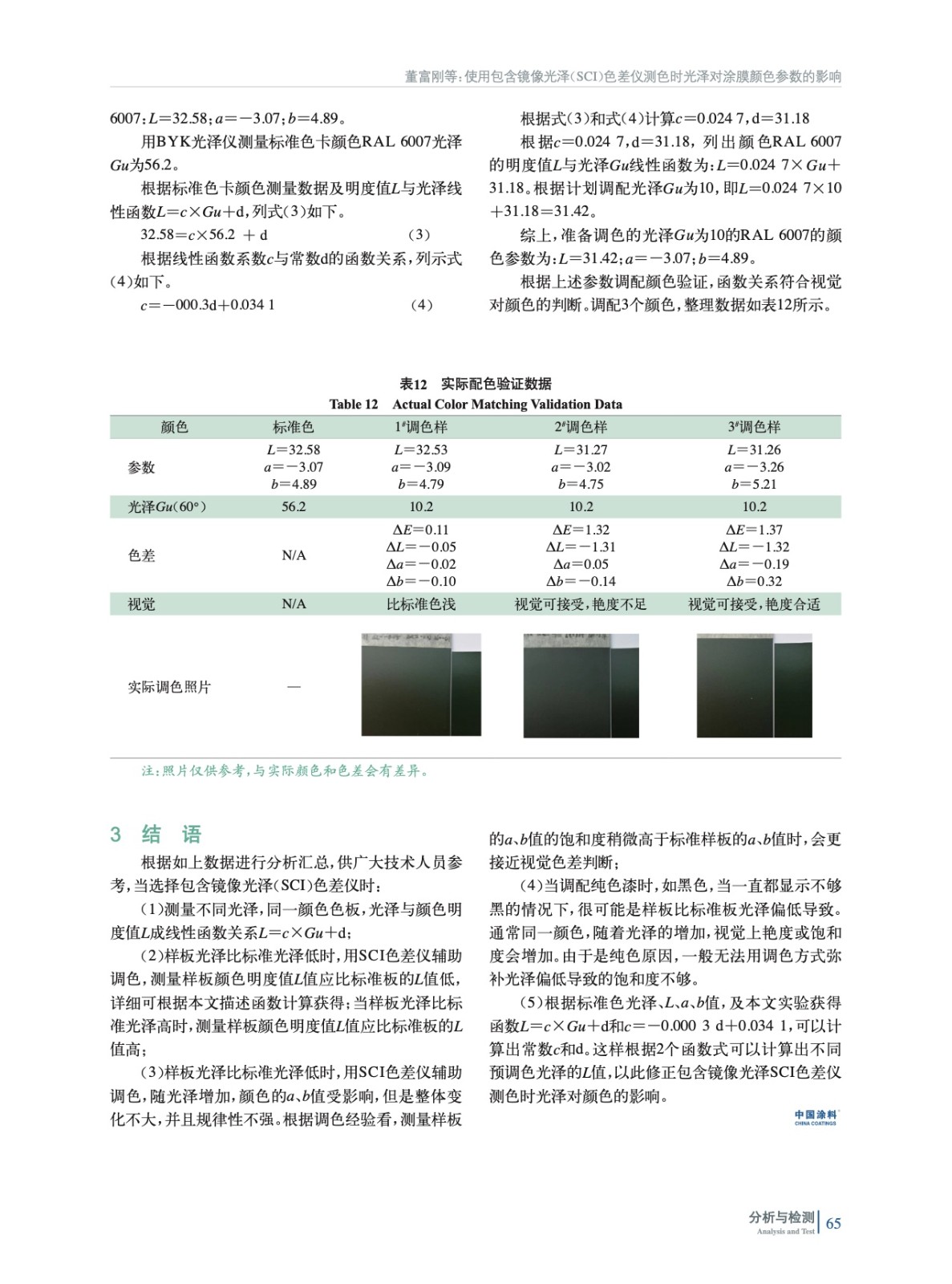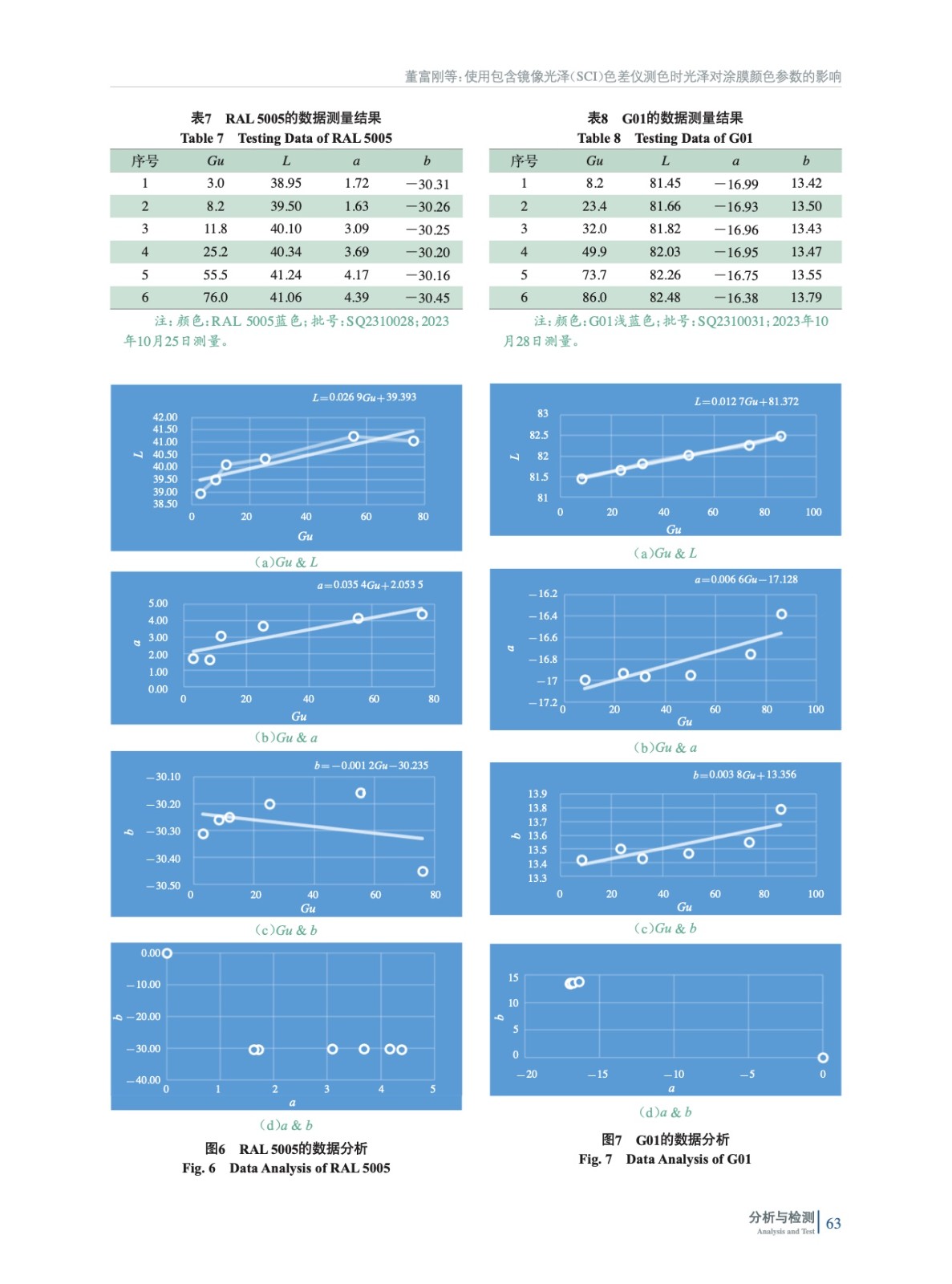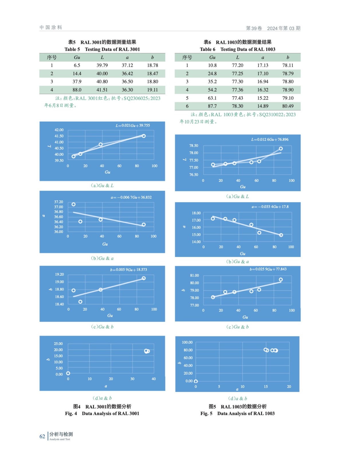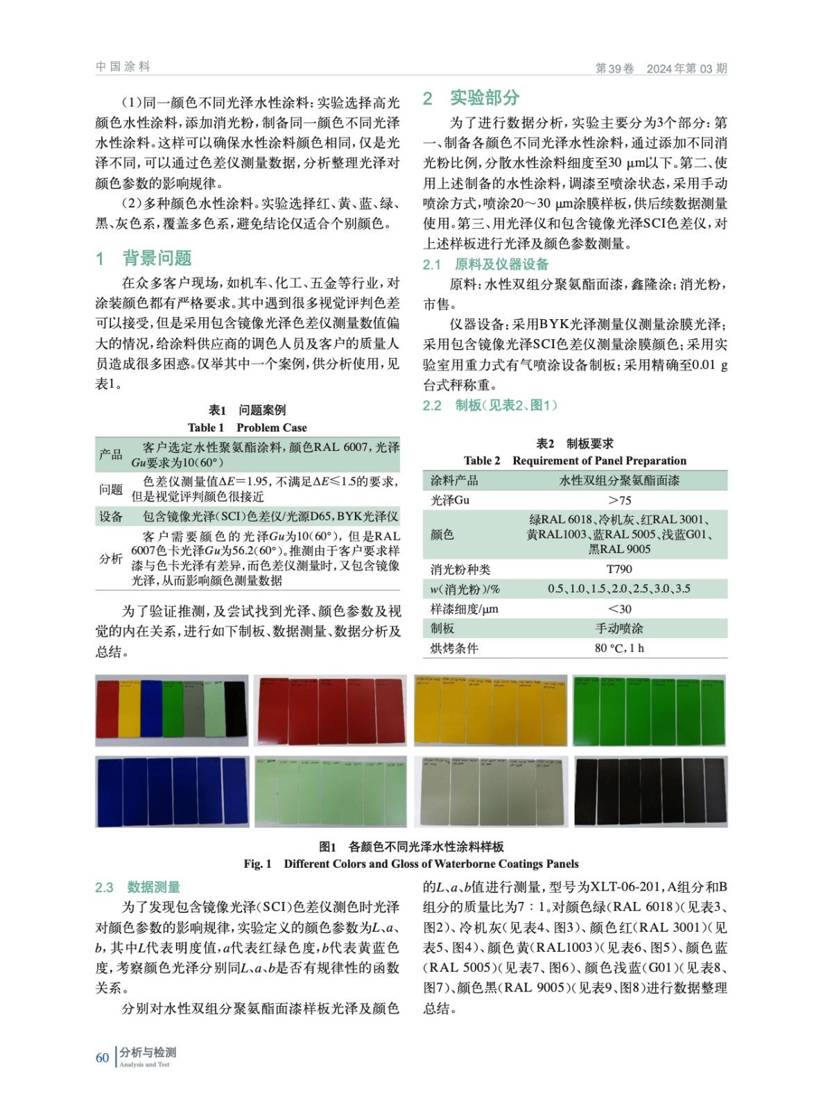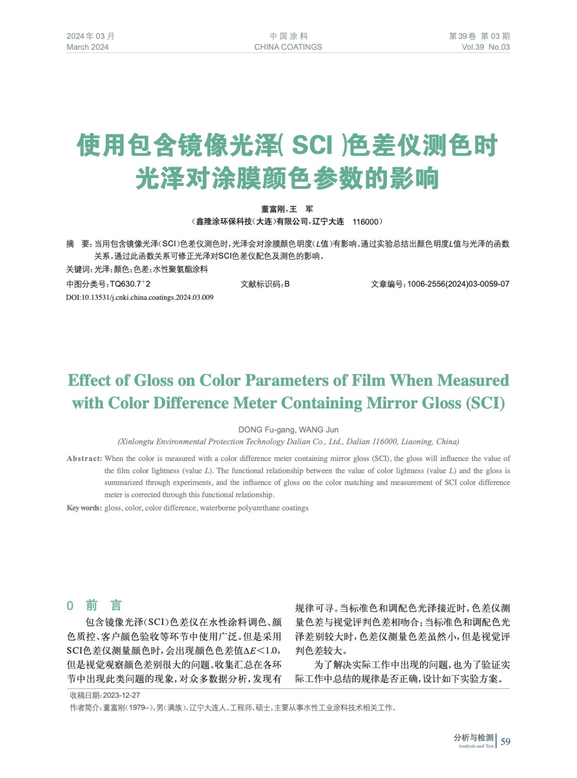 當用包含鏡像光澤(SCI)色差儀測色時,光澤會對涂膜顏色明度(L值)有影響。通過實驗總結出顏色明度L值與光澤的函數關系,通過此函數關系可修正光澤對SCI色差儀配色及測色的影響。