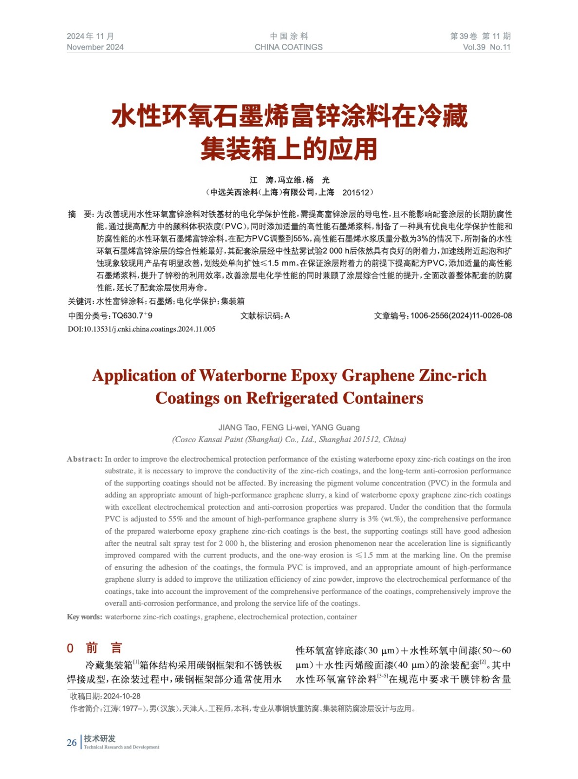 水性環氧石墨烯富鋅涂料在冷藏集裝箱上的應用