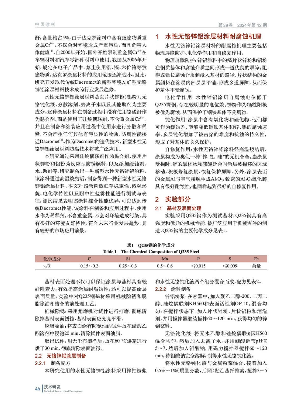 水性無鉻鋅鋁涂層材料的性能研究