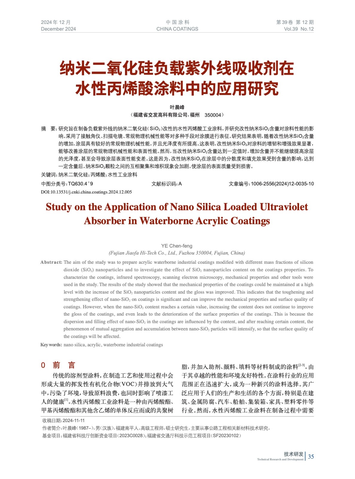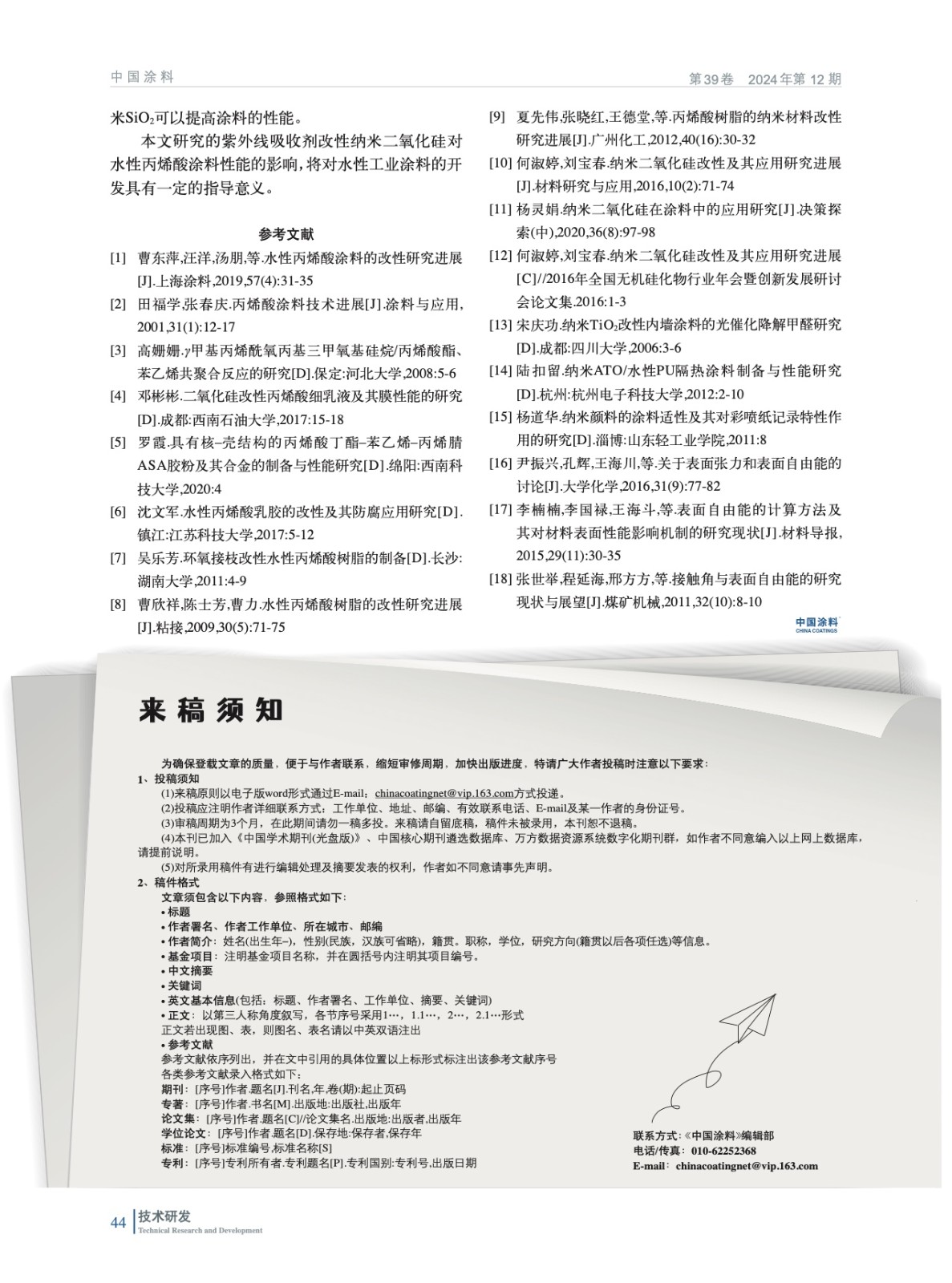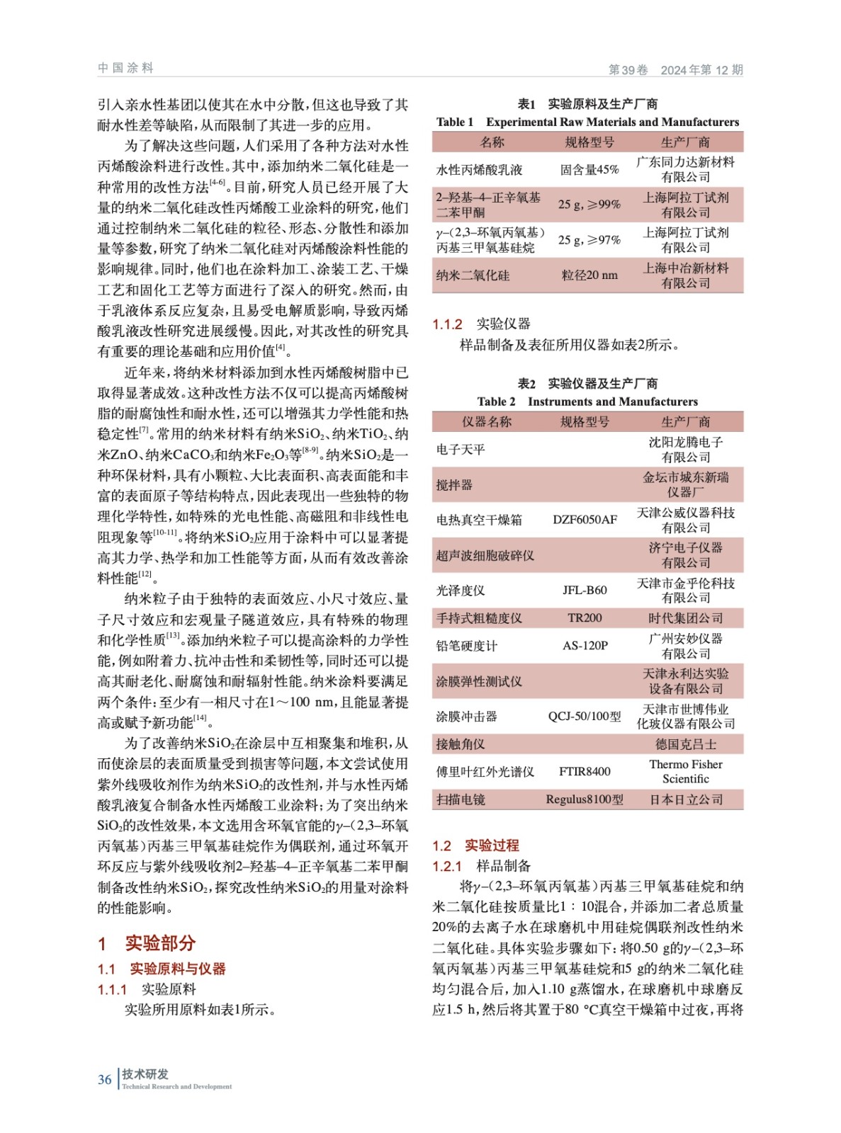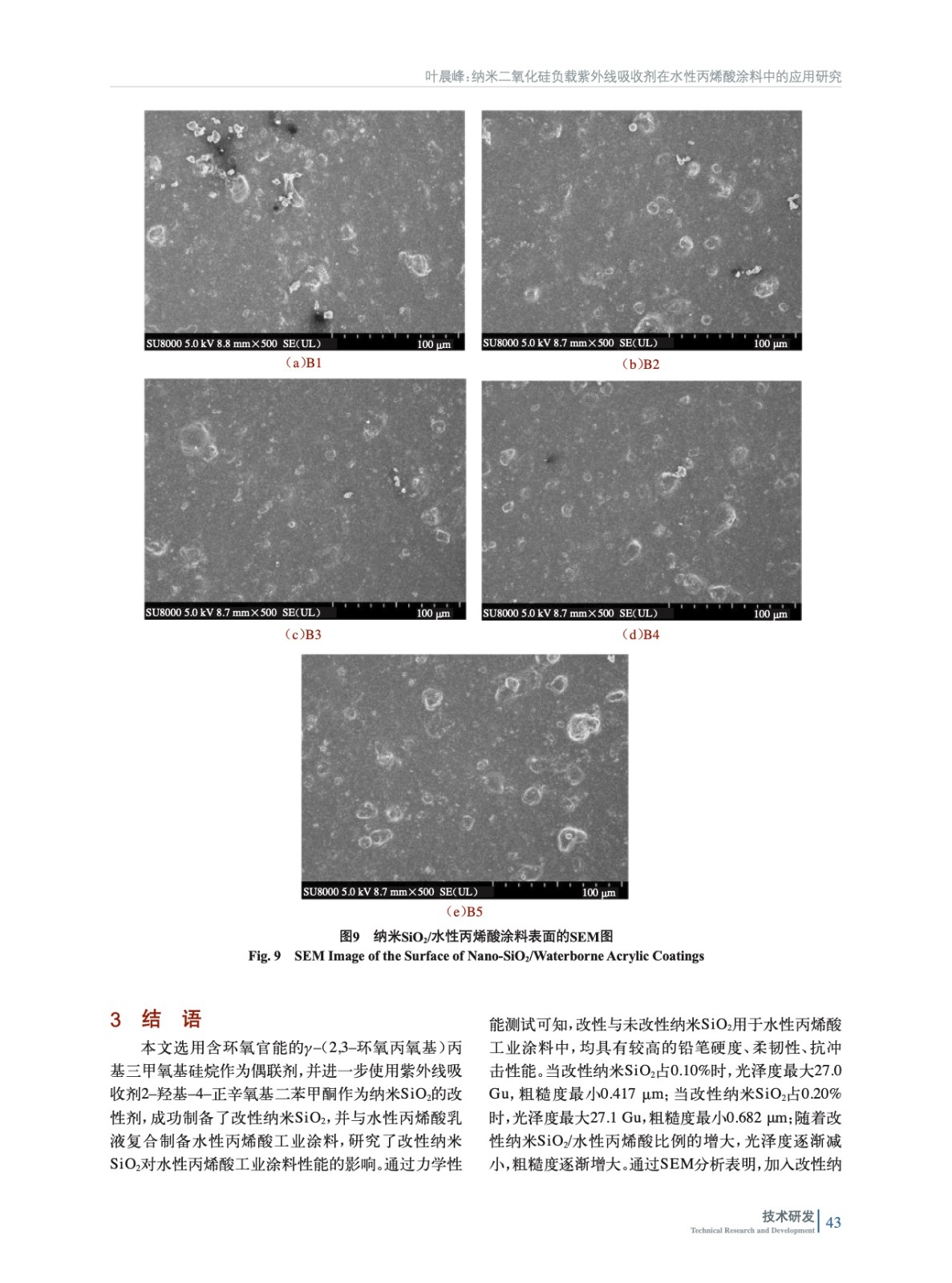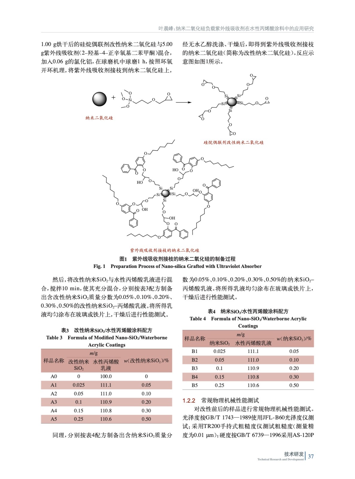 納米二氧化硅負載紫外線吸收劑在水性丙烯酸涂料中的應(yīng)用研究