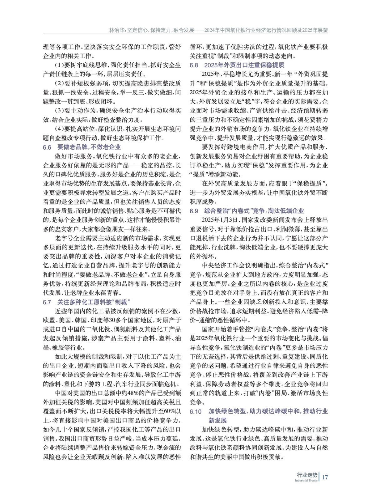 堅(jiān)定信心,保持定力,融合發(fā)展——2024年中國氧化鐵行業(yè)經(jīng)濟(jì)運(yùn)行情況回顧及2025年展望