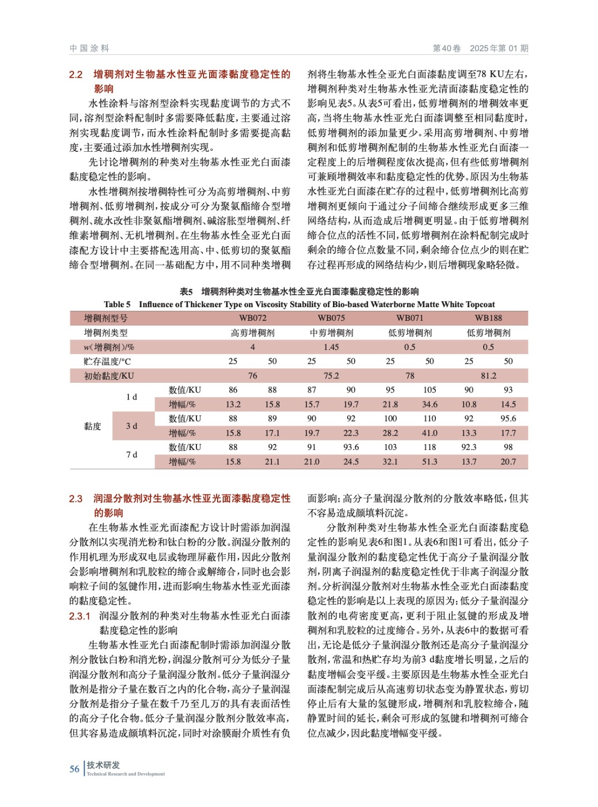 生物基水性亞光面漆的后增稠問題研究