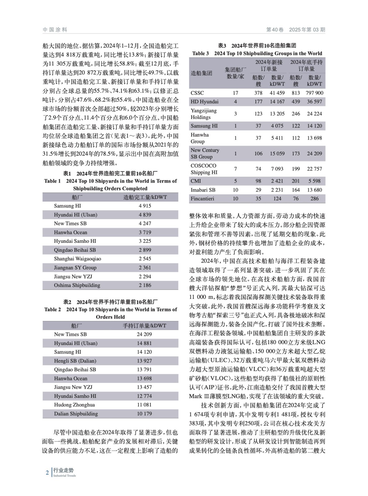 綜述了2024年中國造修船市場及船舶涂料市場情況,回顧梳理了2024年中國船舶涂料相關政策、標準,并對2025年中國造修船及船舶涂料市場進行了展望。