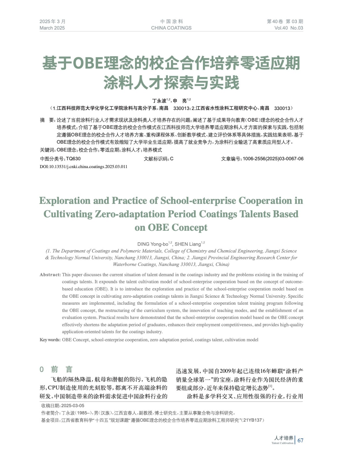基于OBE理念的校企合作培養(yǎng)零適應(yīng)期涂料人才探索與實(shí)踐