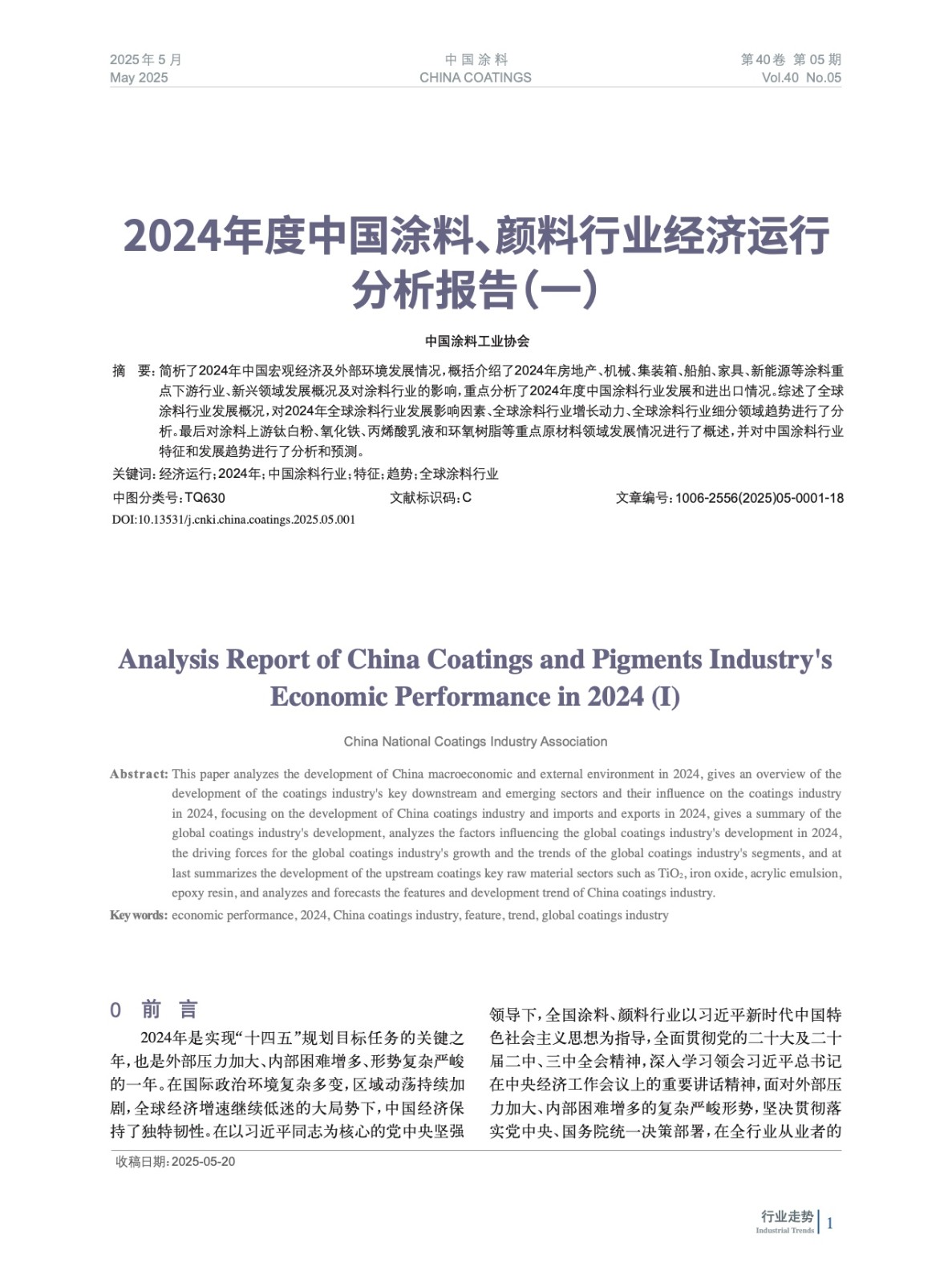 2024年度中國(guó)涂料、顏料行業(yè)經(jīng)濟(jì)運(yùn)行分析報(bào)告(一)
