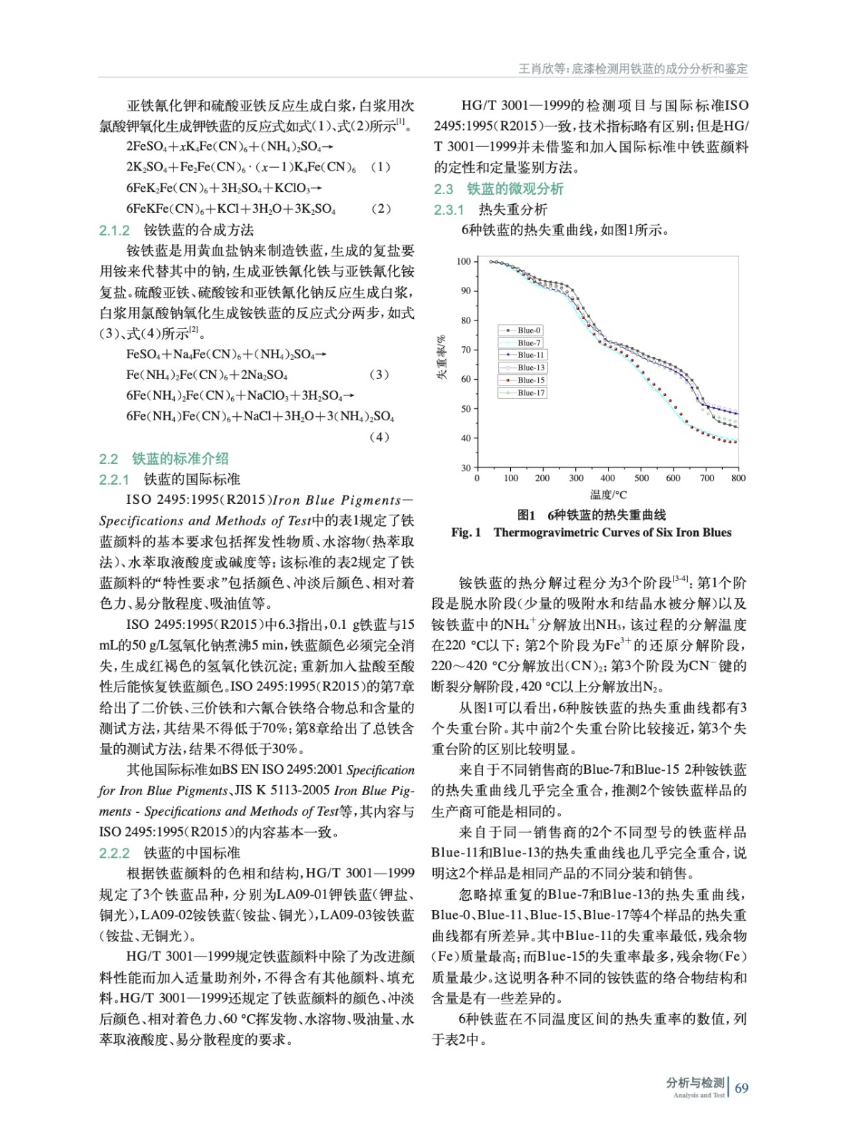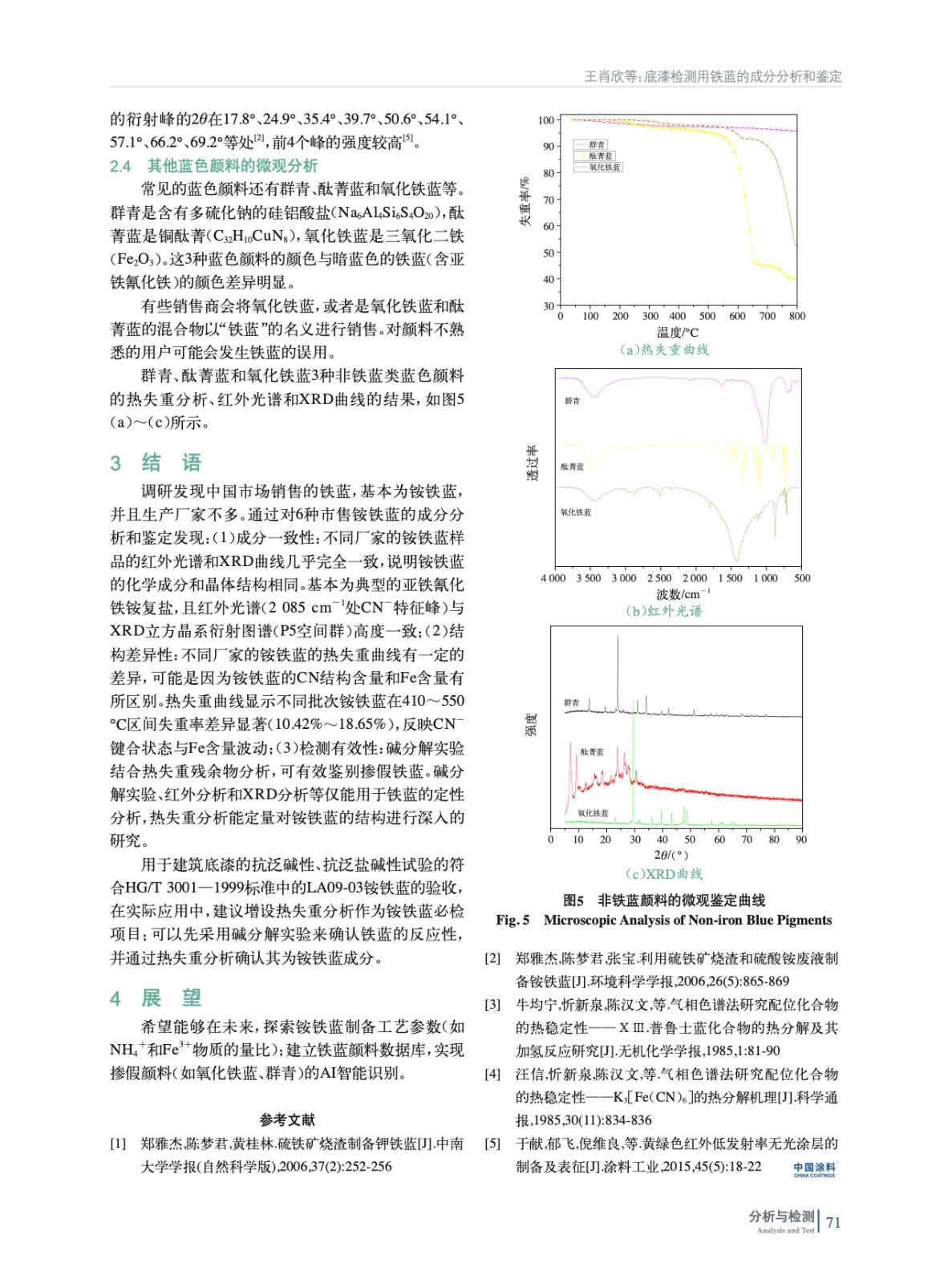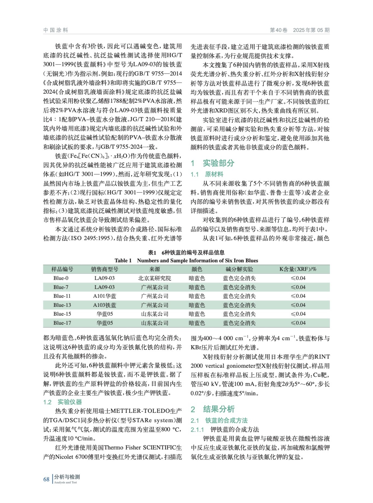 底漆檢測用鐵藍的成分分析和鑒定