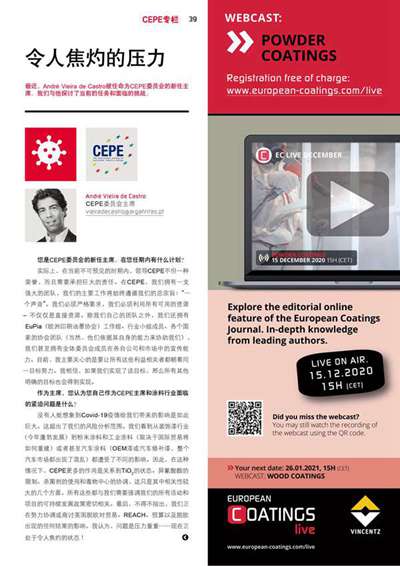 本文系作者@André Vieira de Castro,CEPE委員會新任主席 授權中國涂料網發(fā)表,并經中國涂料網編輯,未經允許不得轉載,如需轉載請聯系chinacoatingnet@vip.163.com