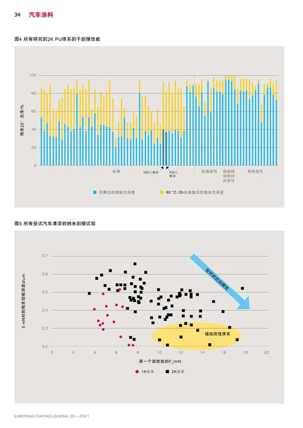 對95種汽車清漆體系進行了干/濕刮擦試驗(老化前后)和耐化學品試驗。該基準研究的試驗揭示了各體系之間存在巨大的差異。