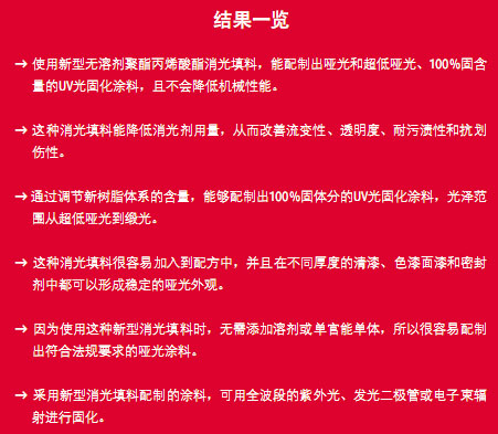 結果表明,在配制100%輻射固化涂料時,這種新型消光填料不僅能提高配方效率,還能改善配方設計的靈活性。