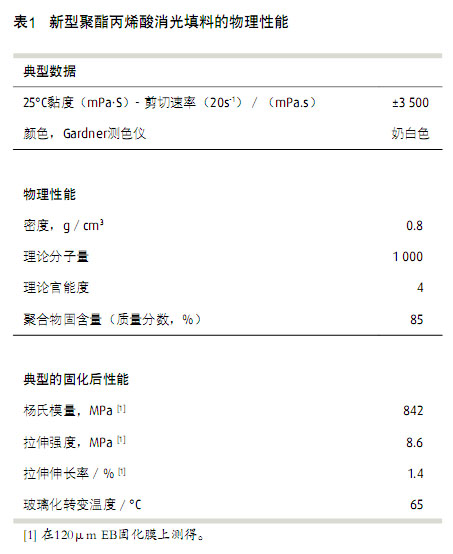 在本文上面提到的所有涂料體系中,都可方便地使用這種新型基料。由于黏度低,很容易加入到到涂料配方中。同時,這種樹脂體系可與100%固含量的輻射固化涂料中常用的聚合物和消光劑相容,是一種理想的參混料。