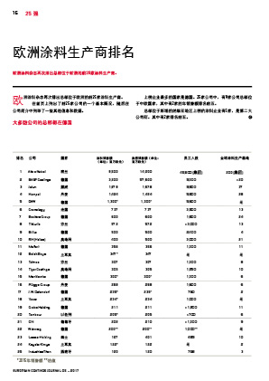 歐洲涂料雜志再次排出總部位于歐洲的前25家涂料生產(chǎn)商