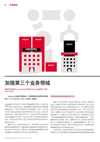 德國涂料制造商J.W.OSTENDORF公司成為了HEMPEL集團的一部分