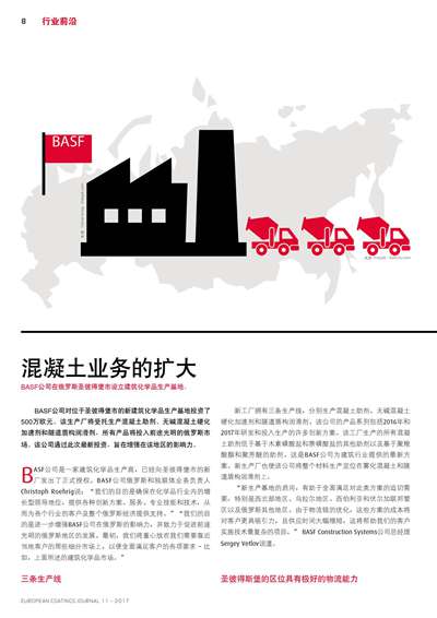 BASF公司在俄羅斯圣彼得堡市設(shè)立建筑化學(xué)品生產(chǎn)基地