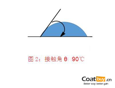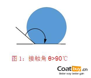 用科學(xué)術(shù)語(yǔ)講:這是一個(gè)“潤(rùn)濕作用”問(wèn)題。即固體表面(涂有涂層)和液體相接觸時(shí),它們之間的夾角(被稱(chēng)為接觸角)通??梢愿爬橄铝腥龍D所示: