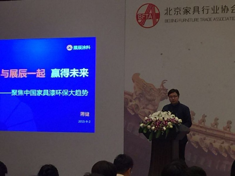在上半場的推介會上,展辰涂料集團品牌總監(jiān)蔣健向與會的家具人解讀了穹頂之下,中國家具業(yè)的未來該如何選擇的主題分享。蔣總的分享從國家對環(huán)保層面的政策,到家具業(yè)面臨的環(huán)保涂裝的困惑,再到環(huán)保涂裝一攬子方案推介。蔣總的推介報告似乎與此次活動度身定造,在場嘉賓無不全神貫注、如獲珍寶。
