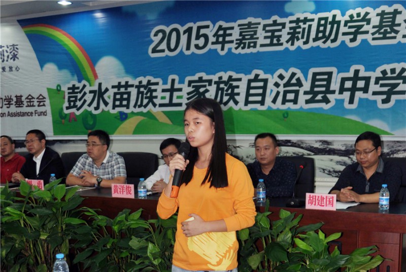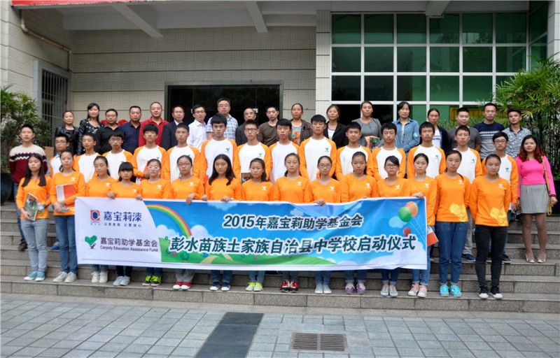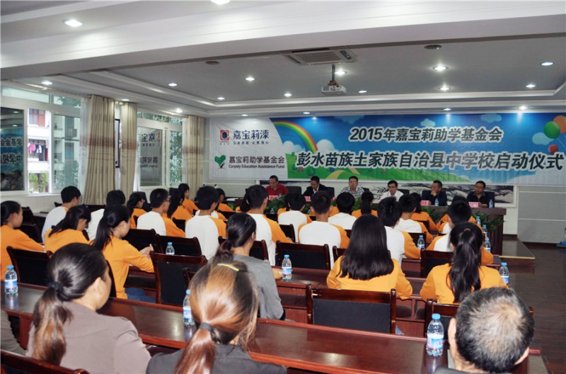 10月21日,2015年嘉寶莉助學啟動儀式在彭水中學多功能廳舉行,30名來自烏江下游兩岸的苗族、土家族高一優秀貧困學子喜獲資助。高中三年,他們將獲得嘉寶莉助學基金會每人每年2000元的資助。