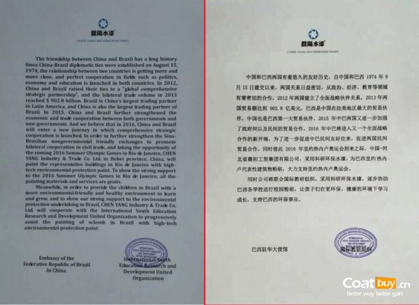 據(jù)悉,晨陽水漆還將聯(lián)合國際教研組織,采用環(huán)保水漆對巴西各學(xué)校進(jìn)行粉刷,讓孩子們在更環(huán)保、健康的環(huán)境下學(xué)習(xí)成長,支持巴西的環(huán)保事業(yè)。