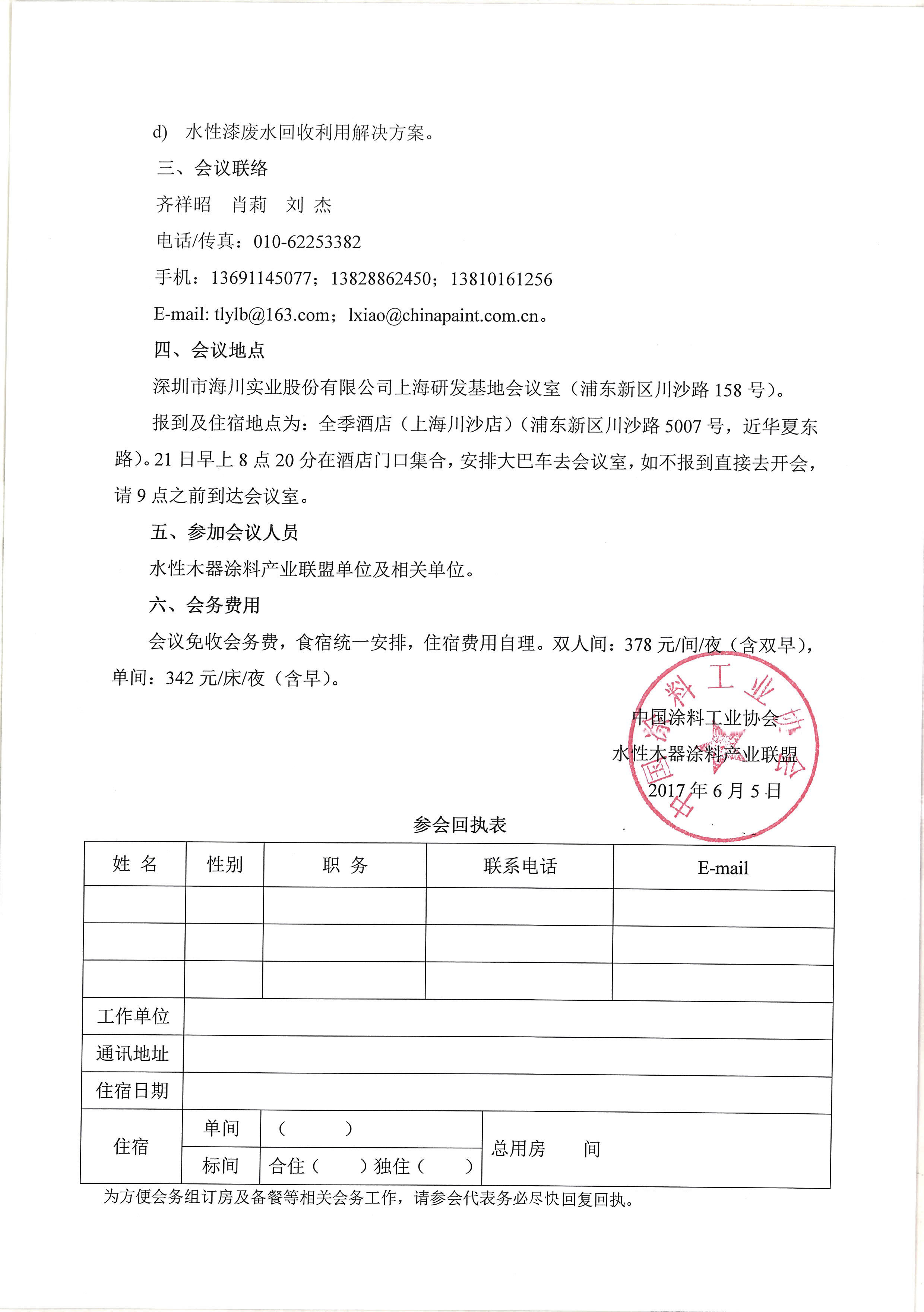 為了增強聯盟各單位以及相關單位之間的交流,探討水性木器涂料及涂裝技術,增進行業在相關技術領域的交流,推進我國水性木器涂料技術進步,水性木器涂料產業聯盟計劃于6月21日在上海召開“2017年水性木器涂料產業聯盟第二次會議”。具體情況如下: