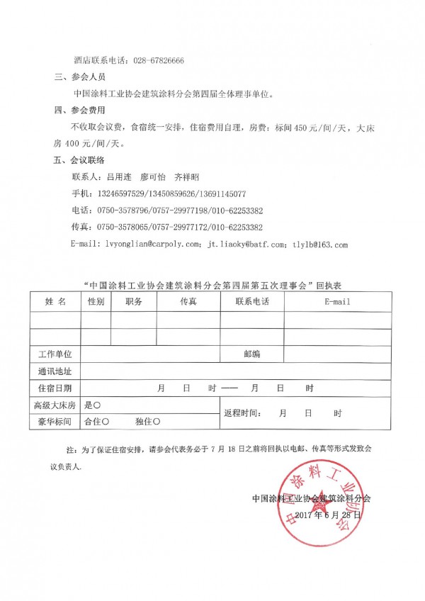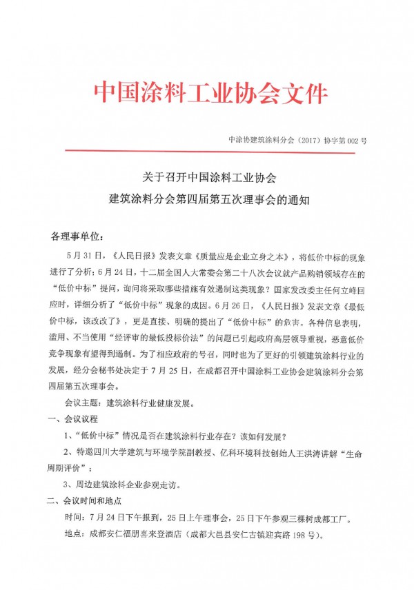 關(guān)于召開中國(guó)涂料工業(yè)協(xié)會(huì)建筑涂料分會(huì)第四屆第五次理事會(huì)的通知