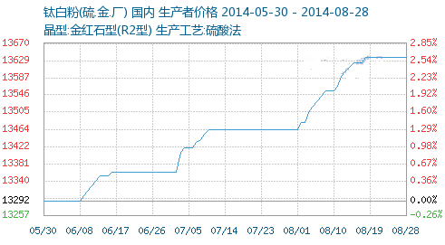 據數據統計,國內鈦白粉出口量從4月起,曾連續第3次同比增幅逾5成,但70.81%、54.93%、53.88%、41.21%的漲幅已現萎縮,一旦外貿出貨受阻,“瘸腿”的市場或就此“癱瘓”,但站在大企的角度看,并不愿就此罷手5個月積累的漲價形勢,遂于此,我們大膽的猜測:9月底或再度拉漲,然后僵持企穩,最終小幅度暗降,“削足適履”國內的弱勢需求。目前國內多數硫酸法金紅石型和銳鈦型鈦白粉的主流報價在11800-13500元/噸和9500-10800元/噸(均含稅)。生意社化工分社鈦白粉分析師楊遜認為:短期看,持穩數日的行情或作為后市“素材”,個企的突襲逆漲,鈦白粉或入再漲前奏,不排除西南龍企9月續漲國內價格。