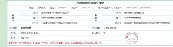 萬眾一心,眾志成城。2020年2月5日,久諾人向常州市光彩事業(yè)促進會捐助100萬元現(xiàn)金,用于武漢等地區(qū)疫情防控工作。目前該筆款項已經(jīng)到賬!