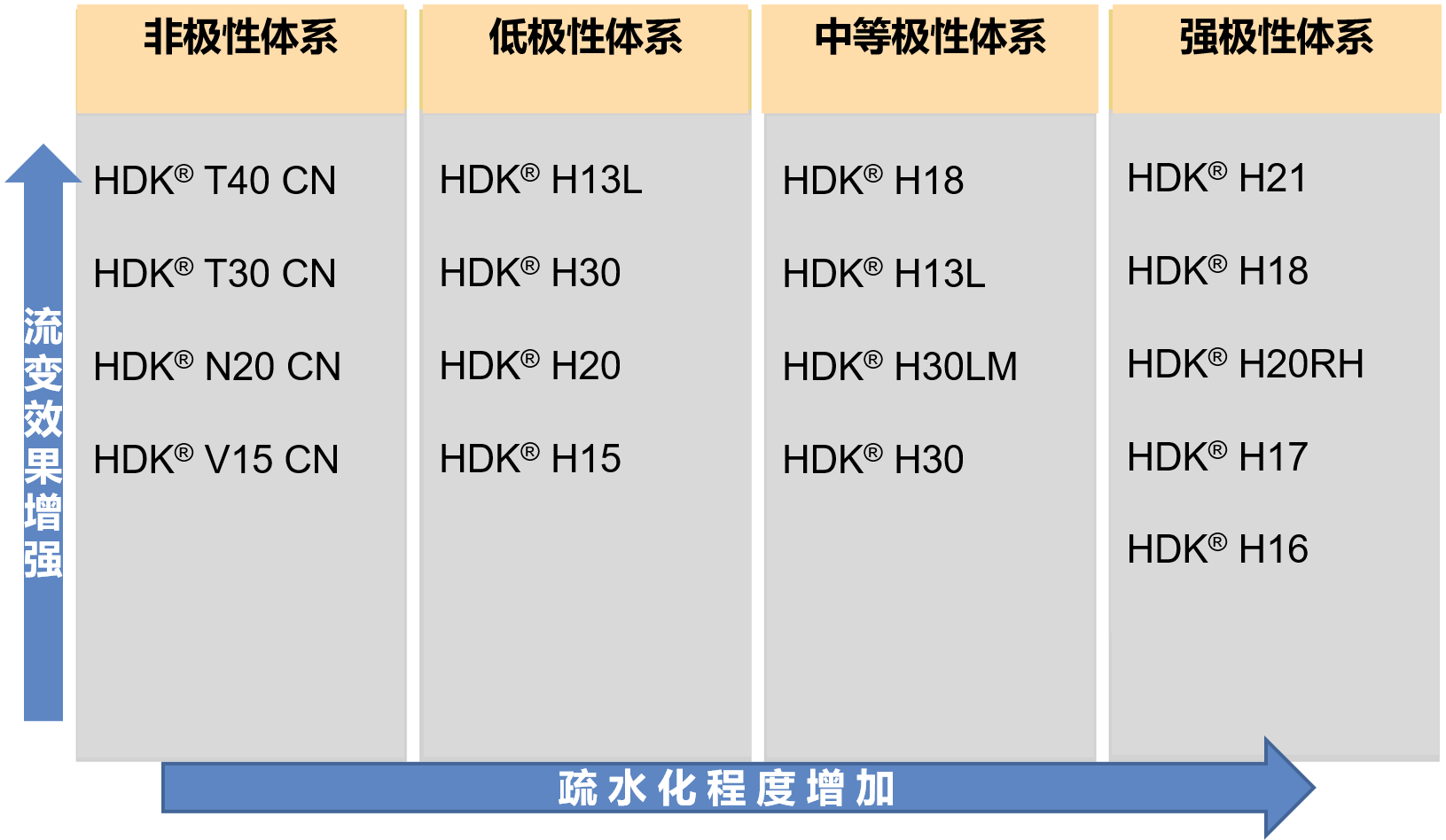 一般隨著涂料體系的極性增強,需要選擇疏水化程度更高的HDK®以實現較好的流變效果。
