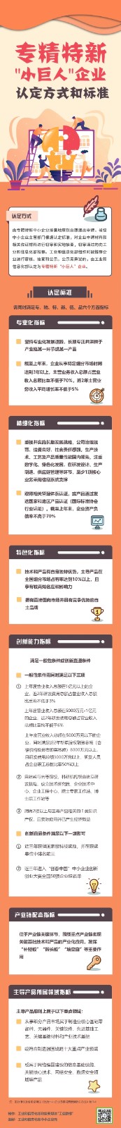 為進一步加強優質中小企業梯度培育工作,推動中小企業高質量發展,工業和信息化部近日印發《優質中小企業梯度培育管理暫行辦法》,明確了創新型中小企業、專精特新中小企業、專精特新“小巨人”企業的評價或認定標準。