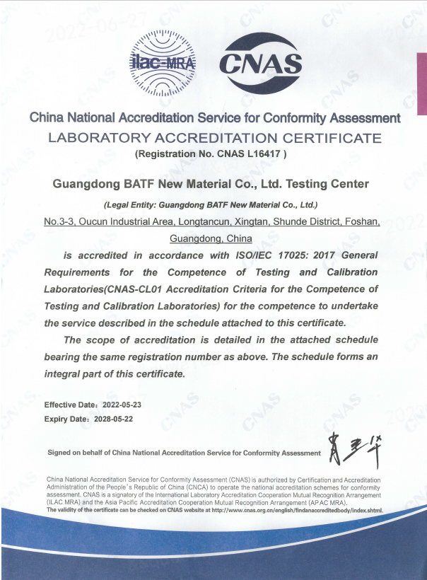 2、產(chǎn)品CNAS認(rèn)證,必須由具備CNAS認(rèn)證資質(zhì)的實(shí)驗(yàn)室承接相關(guān)檢測業(yè)務(wù),并出具產(chǎn)品檢測報(bào)告。巴德富獲得CNAS認(rèn)證,意味著巴德富出具的產(chǎn)品檢測報(bào)告具有權(quán)威性、獨(dú)立性、公正性、技術(shù)性、規(guī)范性、統(tǒng)一性、國際性等特征。