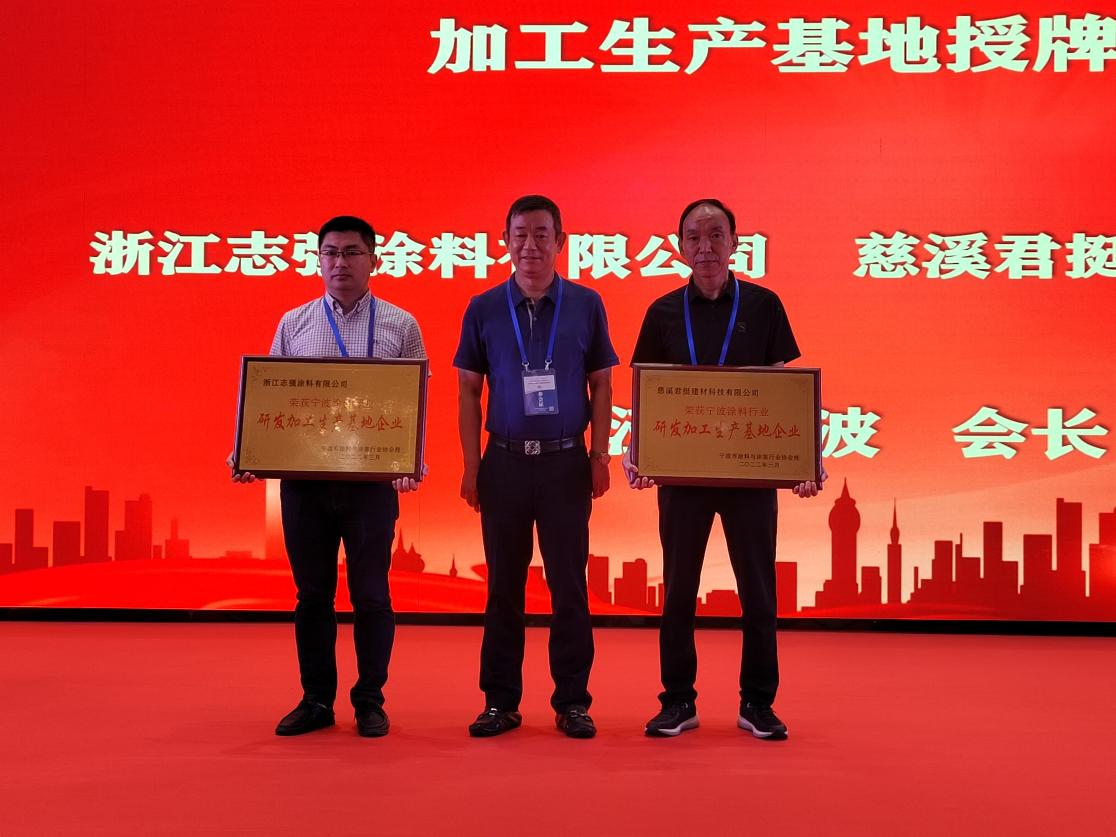 在寧波涂料行業研發加工生產基地授牌儀式上,汪立波會長為2022年度新增寧波涂料行業研發加工生產基地企業授牌。