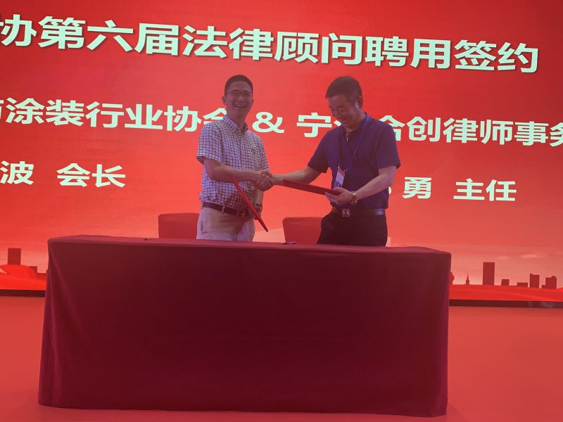 寧波涂協汪立波會長與浙江合創律師事務所鄭勇主任進行現場簽約