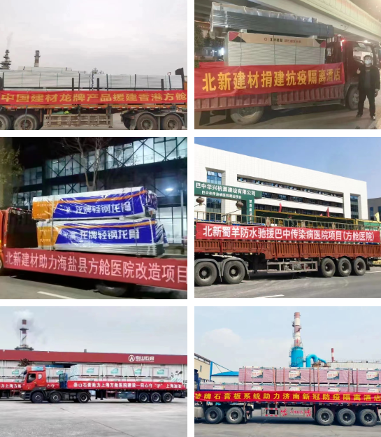 在戰(zhàn)“疫”的號角下,北新建材緊急動員、全面部署,充分發(fā)揮產(chǎn)品全、質量高、環(huán)保好、基地廣的優(yōu)勢,按照“優(yōu)先安排、優(yōu)先配車、優(yōu)先裝車、優(yōu)先發(fā)運”的原則安排建材物資以及其他抗疫物資捐贈事宜,以強烈的社會責任感積極參與到疫情防控阻擊戰(zhàn)當中,跑出了抗擊疫情的“北新速度”。
