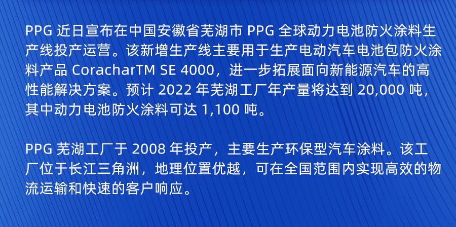 收購(gòu)|PPG蕪湖工廠全球動(dòng)力電池防火涂料生產(chǎn)線投產(chǎn)運(yùn)營(yíng)