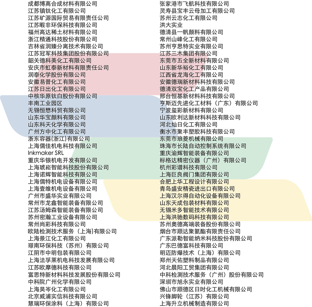 同時(shí)也得到了世界涂料理事會(huì)(WCC)、亞洲涂料工業(yè)理事會(huì)(APIC)、歐洲涂料、印刷油墨和藝術(shù)顏料制造商理事會(huì)(CEPE)、美國(guó)涂料協(xié)會(huì)(ACA) 法國(guó)涂料協(xié)會(huì)(FIPEC)、英國(guó)涂料協(xié)會(huì)(BCF)、日本涂料協(xié)會(huì)(JPMA)、德國(guó)涂料協(xié)會(huì)、越南涂料協(xié)會(huì)等國(guó)外合作機(jī)構(gòu)的鼎盛支持。