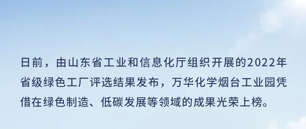綠色工廠|萬華化學煙臺工業園獲評2022山東省綠色工廠