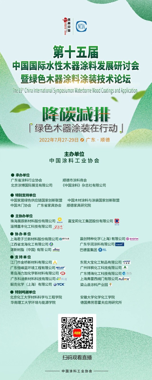 7月28日,在經(jīng)歷了風(fēng)雨洗禮的非常時刻,中國涂料之鄉(xiāng)——順德,迎來了由中國涂料工業(yè)協(xié)會主辦的“第十五屆中國國際水性木器涂料發(fā)展研討會暨綠色木器涂料涂裝技術(shù)論壇”盛會。來自全國原材料、涂料、家具家居及涂裝上下游全產(chǎn)業(yè)鏈的同仁們,共同見證水性木器涂料十五年的艱辛與成長,共同分享水性木器涂料十五年的收獲與成果,共商綠色木器涂料涂裝全產(chǎn)業(yè)鏈降碳減排、協(xié)同發(fā)展大計。