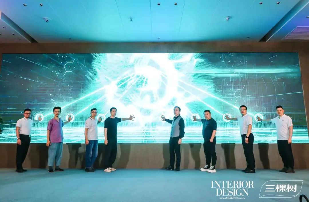 活動最后,王通虎、趙虎、張燦、敖瀚、李樹勇、史中洲、高國彬、顧萌共同啟動第三屆“三棵樹健康+室內設計新星大賽”,新的夢想由此出發!