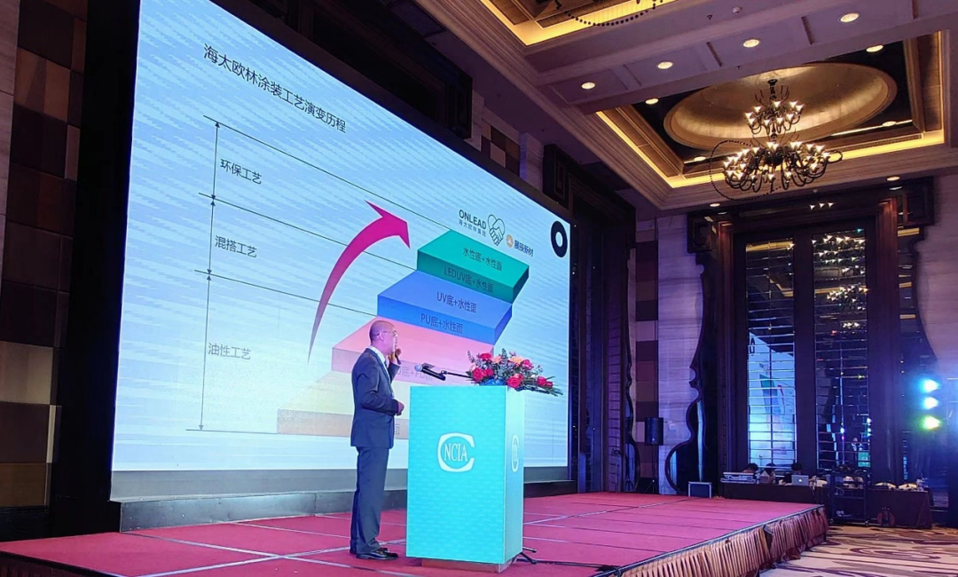 本次會(huì)議有一個(gè)特殊的環(huán)節(jié),邀請(qǐng)優(yōu)秀的家具制造企業(yè)上臺(tái)分享,為大家講述家具制造企業(yè)油轉(zhuǎn)水的心得及歷程。展辰涂料的優(yōu)秀合作伙伴海太歐林集團(tuán)有限公司營(yíng)銷總監(jiān)趙霖飛先生、百得勝智能家居有限公司總經(jīng)理助理張慧女士分別帶來精彩分享,展現(xiàn)了優(yōu)秀家居制造企業(yè)對(duì)綠色家居理念的堅(jiān)守、對(duì)環(huán)保涂裝升級(jí)的決心,并分享了與展辰一同攻克“油轉(zhuǎn)水”技術(shù)難關(guān)的經(jīng)驗(yàn)及心得。兩位嘉賓的分享引起上下游企業(yè)的深刻共鳴,得到了與會(huì)行業(yè)同仁的熱烈掌聲。此時(shí)此刻,大家都知道,環(huán)保水性木器涂料的發(fā)展一定要打通上下游,從終端需求到頂層研發(fā),形成良性的反饋機(jī)制,小步快跑、協(xié)同進(jìn)步,這樣水性涂料才會(huì)有良性發(fā)展和未來。