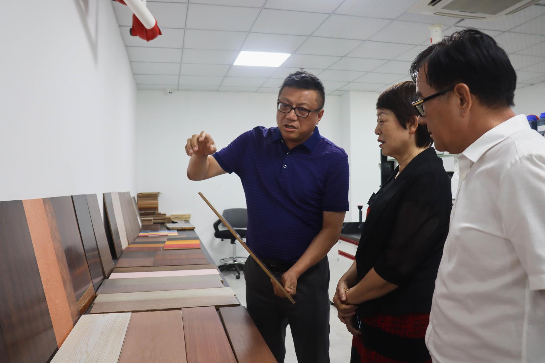 在納美新材董事長趙磊先生的陪同下,孫蓮英會長一行走進公司研發中心,了解水性工業涂料的研發生產和銷售情況。在研發中心,趙磊先生向孫蓮英會長一行介紹了研發中心、企業研究院、企業技術中心、院士工作站及博士后工作站等企業科研平臺建設、企業研發人員構成及配比、企業新產品研發成果等情況。納美新材通過與國內外科研機構及高校開展合作,推動成果轉化,產品不斷迭代更新,發展勢頭迅猛。