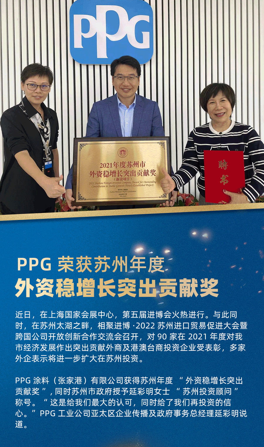 喜訊|PPG榮獲蘇州年度“外資穩(wěn)增長突出貢獻(xiàn)獎”