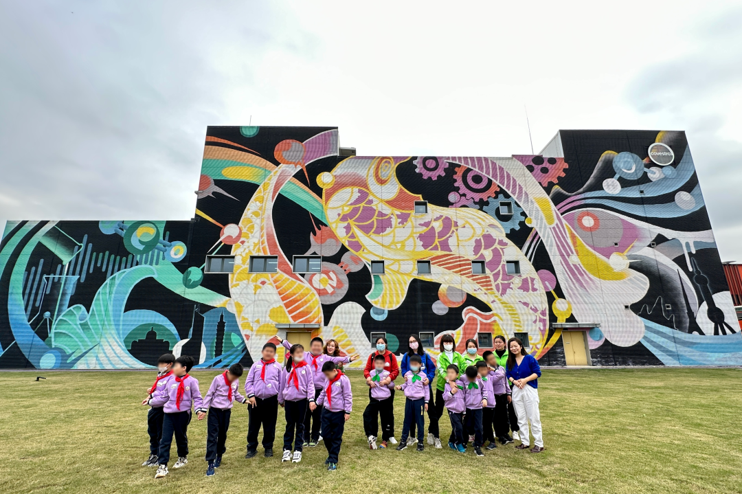 在參觀創(chuàng)新樓的涂鴉墻時(shí),擅長(zhǎng)繪畫(huà)和觀察的星寶們駐足停留,似乎不愿離開(kāi)。當(dāng)被問(wèn)及原因時(shí),才知道他們?cè)瓉?lái)是聯(lián)想到了青聰泉校舍內(nèi)的易清潔涂鴉墻。沒(méi)錯(cuò),2021年科思創(chuàng)以創(chuàng)新的材料解決方案為孩子們打造的一面蔚藍(lán)大海易清潔墻。五年來(lái)的溫暖陪伴,細(xì)節(jié)之處無(wú)不體現(xiàn)著科思創(chuàng)與星寶們心與心的碰撞,愛(ài)與愛(ài)的交融!