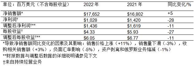 ● 2022年全年創紀錄實現銷售額約177億美元,其中有機增長達8%