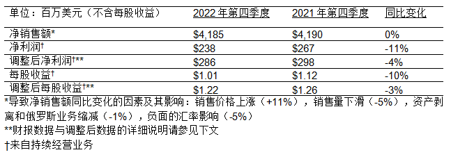 注:本新聞稿中使用的“有機銷售額”一詞的定義:凈銷售額,不含外幣折算、收購、資產剝離和俄羅斯業務縮減等項目。