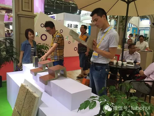 固克涂料集團旗下高端品牌“天工石”,其作為仿真石外墻裝飾保溫系統首選品牌,以仿歐建筑的風格、超越石材的新材料、新工藝亮相上海,全方位展示品牌實力,博得贊譽的同時,吸引眾多專業觀眾駐足參觀咨詢,也更成功吸引海內外客商的關注。技術與工藝的融合,源于石材,勝于石材,天工石以其卓越的環保節能特性超越石材,開啟了低碳生活新時代,實現建筑與城市和諧相融,為客戶打造綠色建筑、綠色裝飾保駕護航。