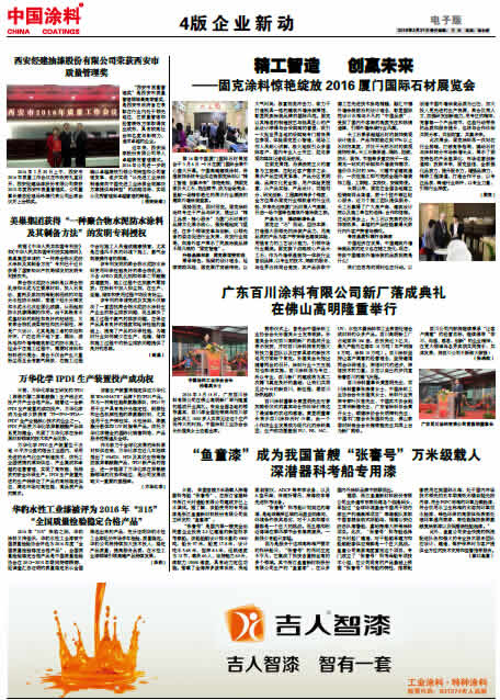 《中國涂料報》(電子版)的一切內容(包括但不限于文字、圖片、PDF、圖表、標志、標識、商標、版面設計、專欄目錄與名稱、內容分類標準以及為讀者提供的任何信息)僅供中國涂料信息網讀者閱讀、學習研究使用,未經中國涂料雜志社有限公司及/或相關權利人書面授權,任何單位及個人不得將《中國涂料報》(電子版)所登載、發布的內容用于商業性目的,包括但不限于轉載、復制、發行、制作光盤、數據庫、觸摸展示等行為方式,或將之在非本站所屬的服務器上作鏡像。否則,中國涂料雜志社有限公司將采取包括但不限于網上公示、向有關部門舉報、訴訟等一切合法手段,追究侵權者的法律責任。