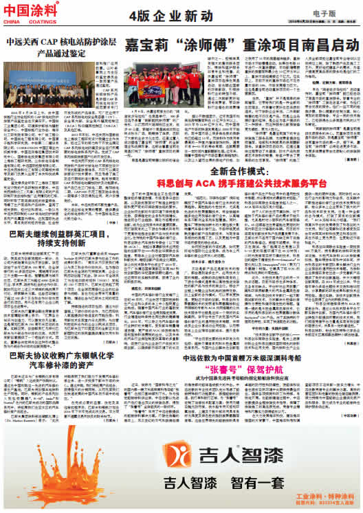 《中國涂料報》(電子版)的一切內容(包括但不限于文字、圖片、PDF、圖表、標志、標識、商標、版面設計、專欄目錄與名稱、內容分類標準以及為讀者提供的任何信息)僅供中國涂料信息網讀者閱讀、學習研究使用,未經中國涂料雜志社有限公司及/或相關權利人書面授權,任何單位及個人不得將《中國涂料報》(電子版)所登載、發布的內容用于商業性目的,包括但不限于轉載、復制、發行、制作光盤、數據庫、觸摸展示等行為方式,或將之在非本站所屬的服務器上作鏡像。否則,中國涂料雜志社有限公司將采取包括但不限于網上公示、向有關部門舉報、訴訟等一切合法手段,追究侵權者的法律責任。