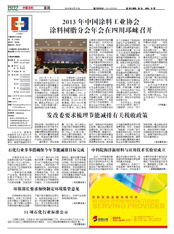 2013 年中國涂料工業(yè)協(xié)會(huì)涂料樹脂分會(huì)年會(huì)在四川邛崍召開