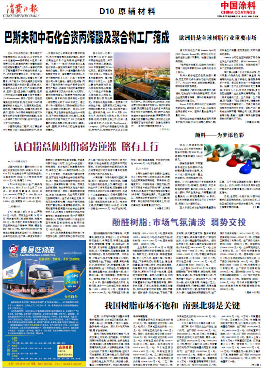 中國(guó)涂料報(bào) 2014年6月12日 星期四