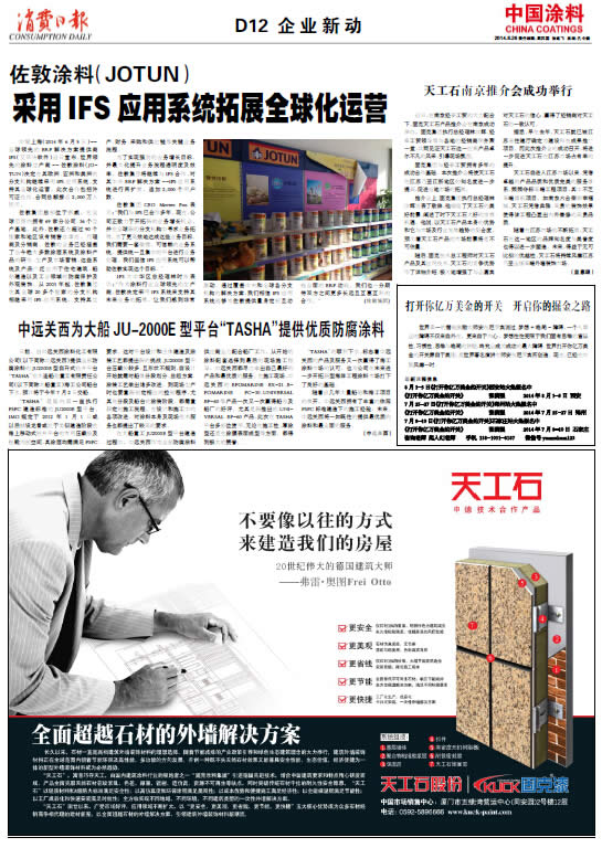 中國涂料報 2014年6月26日 星期四